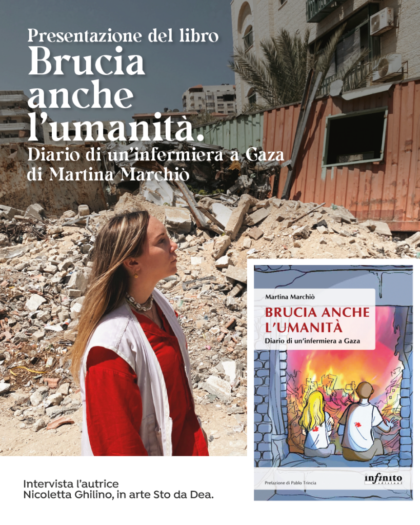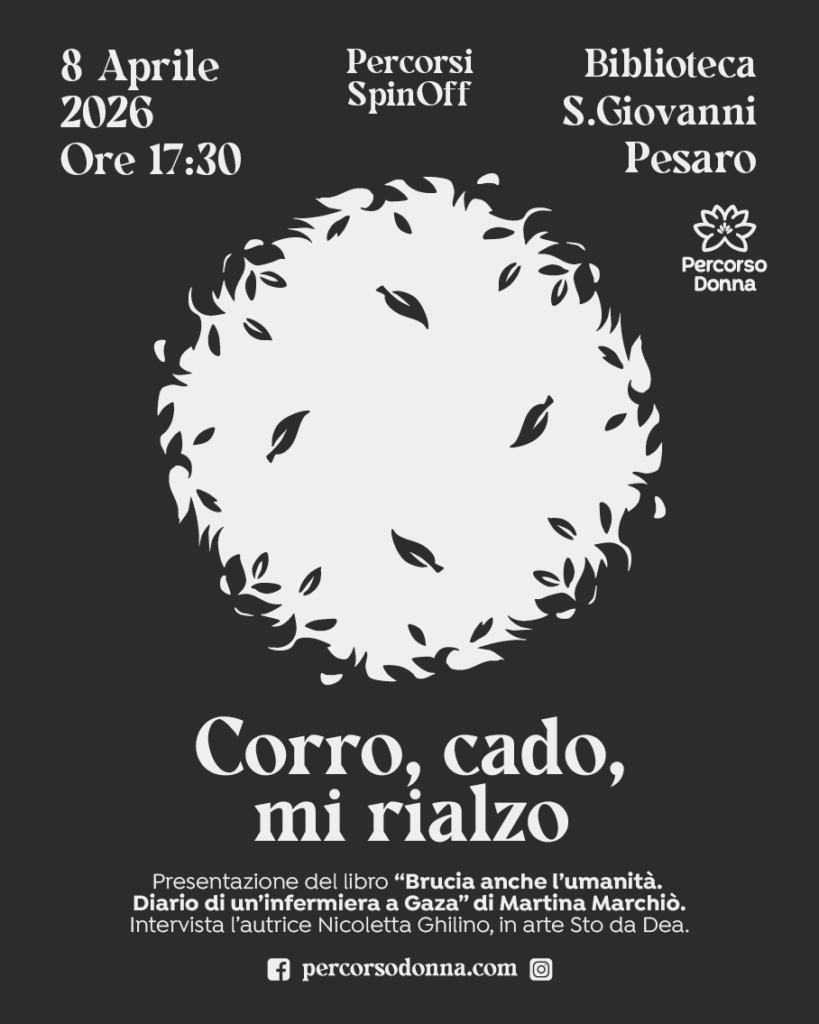Prosegue il percorso di avvicinamento a Percorsi 2026 con un altro evento SpinOff: Mercoledì 8 aprile alle 17:30 ci vediamo a Pesaro, alla Biblioteca San Giovanni per la presentazione del libro Brucia anche l’umanità – Diario di un’infermiera a Gaza di Martina Marchiò.